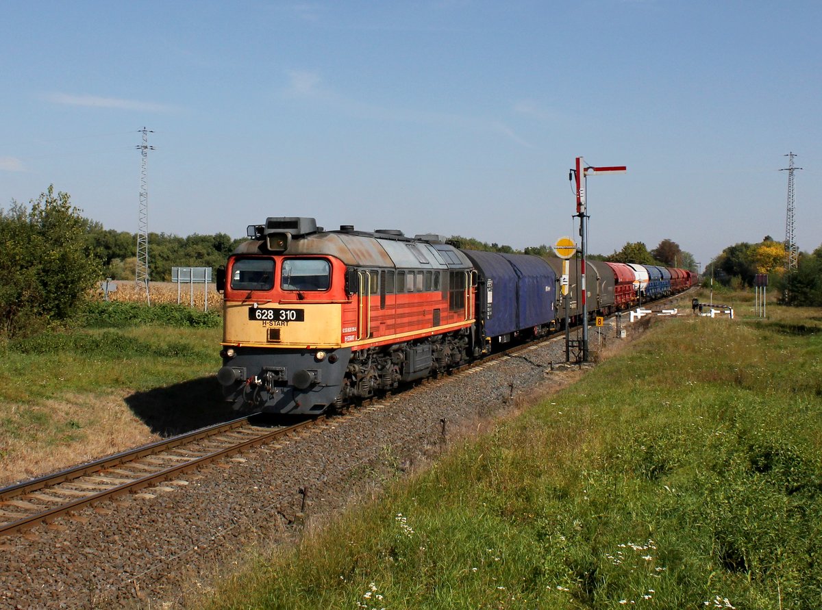 Die 628 310 mit einem Güterzug am 30.09.2016 unterwegs bei Mezőlak.