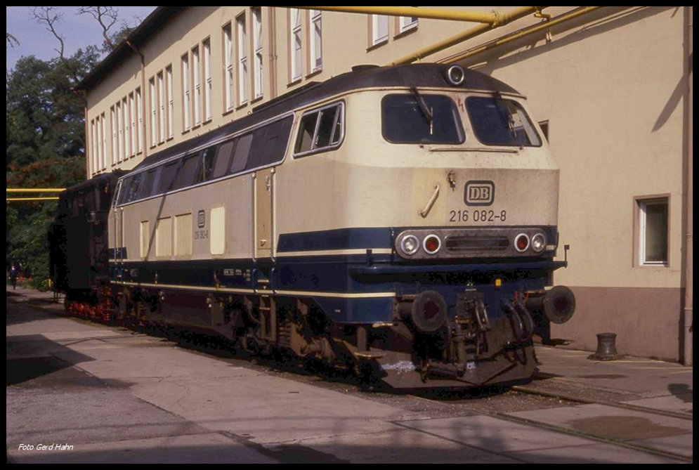 So voll habe ich danach den Bahnhof Kreiensen nicht wieder gesehen. Am 10.09.1989 belegten Dieselloks, Güterzüge und Personenzüge nahezu alle Gleise im Ostbereich. Vorn sind links 218262 und daneben 216164 zu sehen.