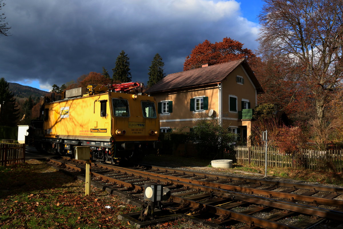 Noch nicht ganz vorbei ist der Herbst bei uns in der Weststeiermark. Eine wunderbare Stimmung brachte mir der "Jauk-Wind" auch als Fön-Wind bekannt. Die Dunklen Wolken mit den wunderbaren Farben des Laubes das die teilweise durchbrechenden Sonne erleuchtet bilden den perfekten Kontrast. SKL X953.018 flitzt in den Bahnhof Deutschlandsberg hinein. 18.11.2016