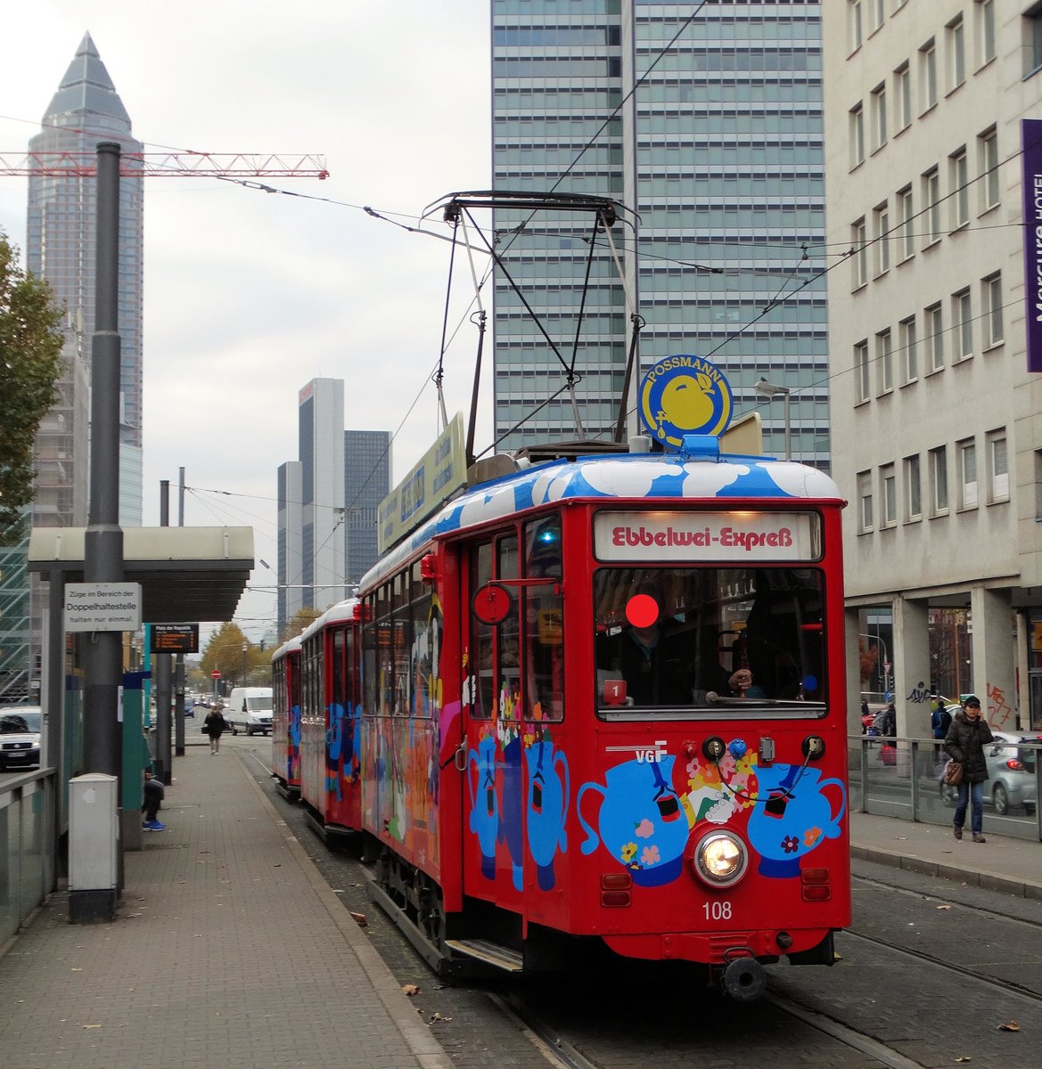 VGF K-Wagen 108 als Ebbelex (Ebbelwei Express) am 12.11.16 in Frankfurt am Main