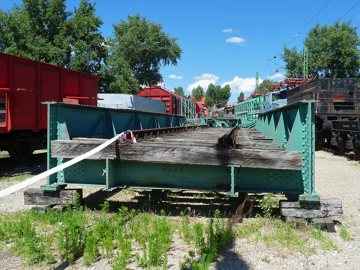 Stegblech-Stahlbrücke mit Tieffahrbahn von 1908 im Hungarian Railway Museum, Budapest, 18.6.2016