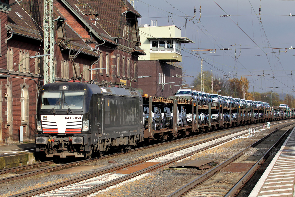 Die X4E-857 mit einem Autozug am 09.09.2016 unterwegs bei Fahlenbach.