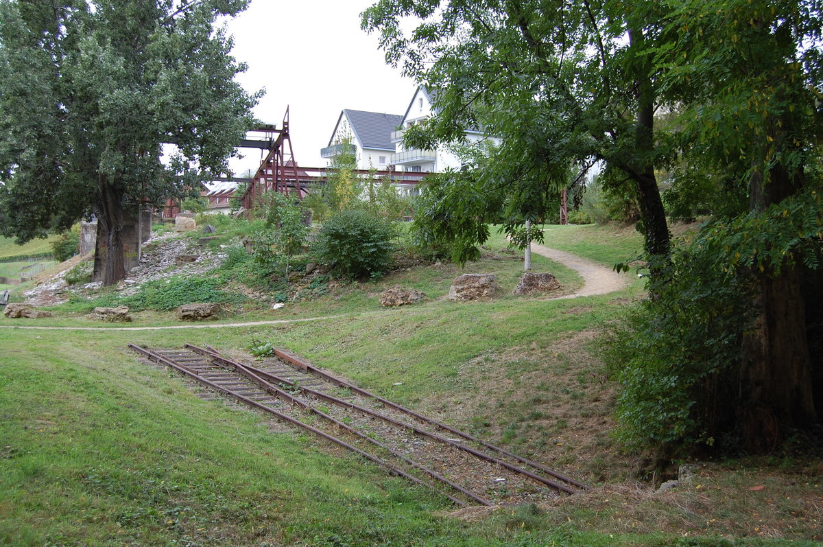 Steinbearbeitungsanlage der ehemaligen Industriebahn Münster–Cannstatt am 3. Oktober 2016