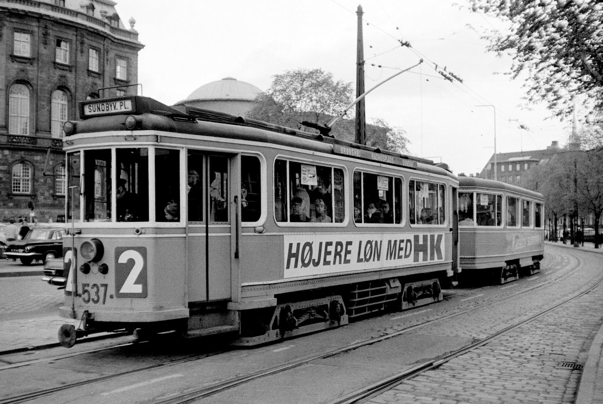København / Kopenhagen Københavns Sporveje SL 6 (Tw 576 + Bw 15xx) Centrum, Holmens Kanal / Ved Stranden / Holmens Kirke / Holmens Bro im Mai 1968. - Das dänische Wort 'holm' kann man durch das Wort 'Werder' ins Deutsche übersetzen. 'Holmen' bezeichnete aber als Eigenname lange Zeit den Hauptsitz der dänischen Kriegsflotte, und die Kirche 'Holmens Kirche', deren Gebäude ursprünglich eine Ankerschmiede beherbergte und am 5. September 1619 in eine Kirche umgestaltet und später erweitert wurde, war / ist die Kirche der dänischen Marine. - En Teil der Straße 'Holmens Kanal' war bis 1864 ein Kanal; deshalb trägt die Straße diesen für eine Straße merkwürdige Namen. - Scan von einem S/W-Negativ. Film: Ilford FP 3.