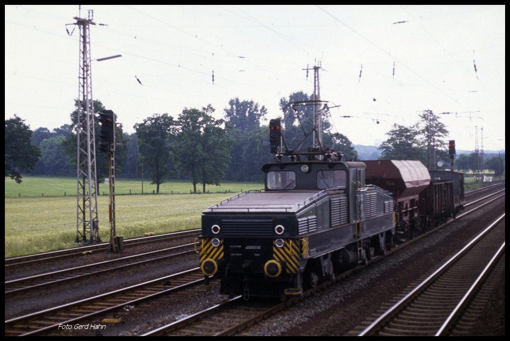 V 320 der TWE kehrt von einem Stahlzugeinsatz zurück und erreicht hier am 8.6.1998 Gütersloh.
