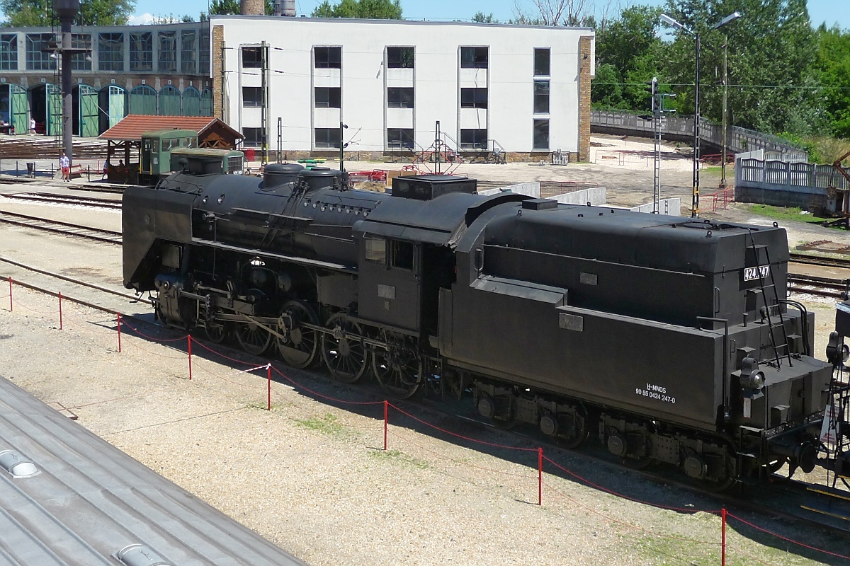 Blick von der Fußgängerbrücke auf die 424.247 der MAV im Hungarian Railway Museum, Budapest, 18.6.2016