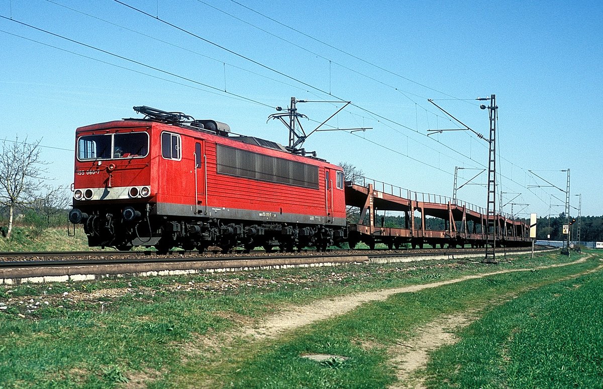 151 018 und 151 074 fahren mit dem Wenzel-KLV bei Übersee in Richtung Salzburg, aufgenommen am 15. September 2016.