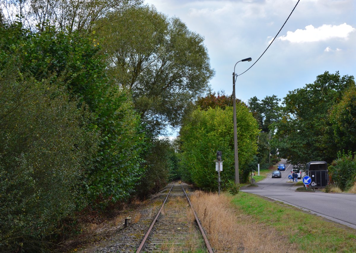 Blick von einem Bahnübergang Richtung Eupen Bahnhof.