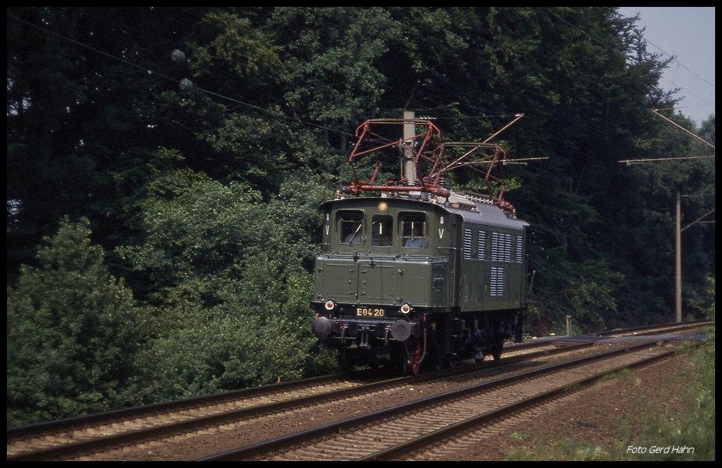 Das war einer der letzten Einsätze der E 0420: Die Lok ist hier in Osnabrück - Atter am 5.7.1989 um 16.20 Uhr nach Rheine unterwegs.