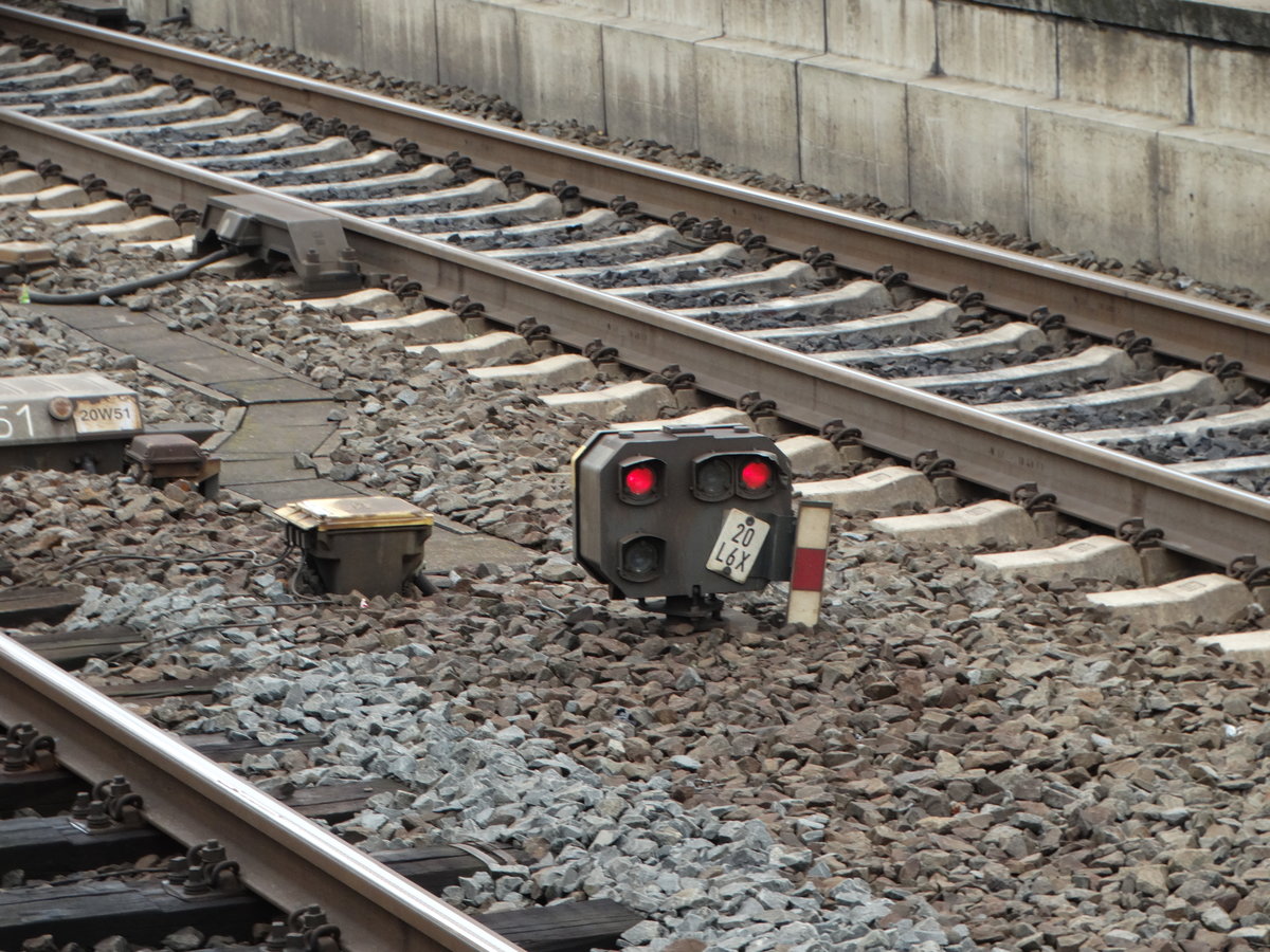 Rangiersignal am 04.10.16 in Hanau Hbf vom Bahnsteig aus fotografiert