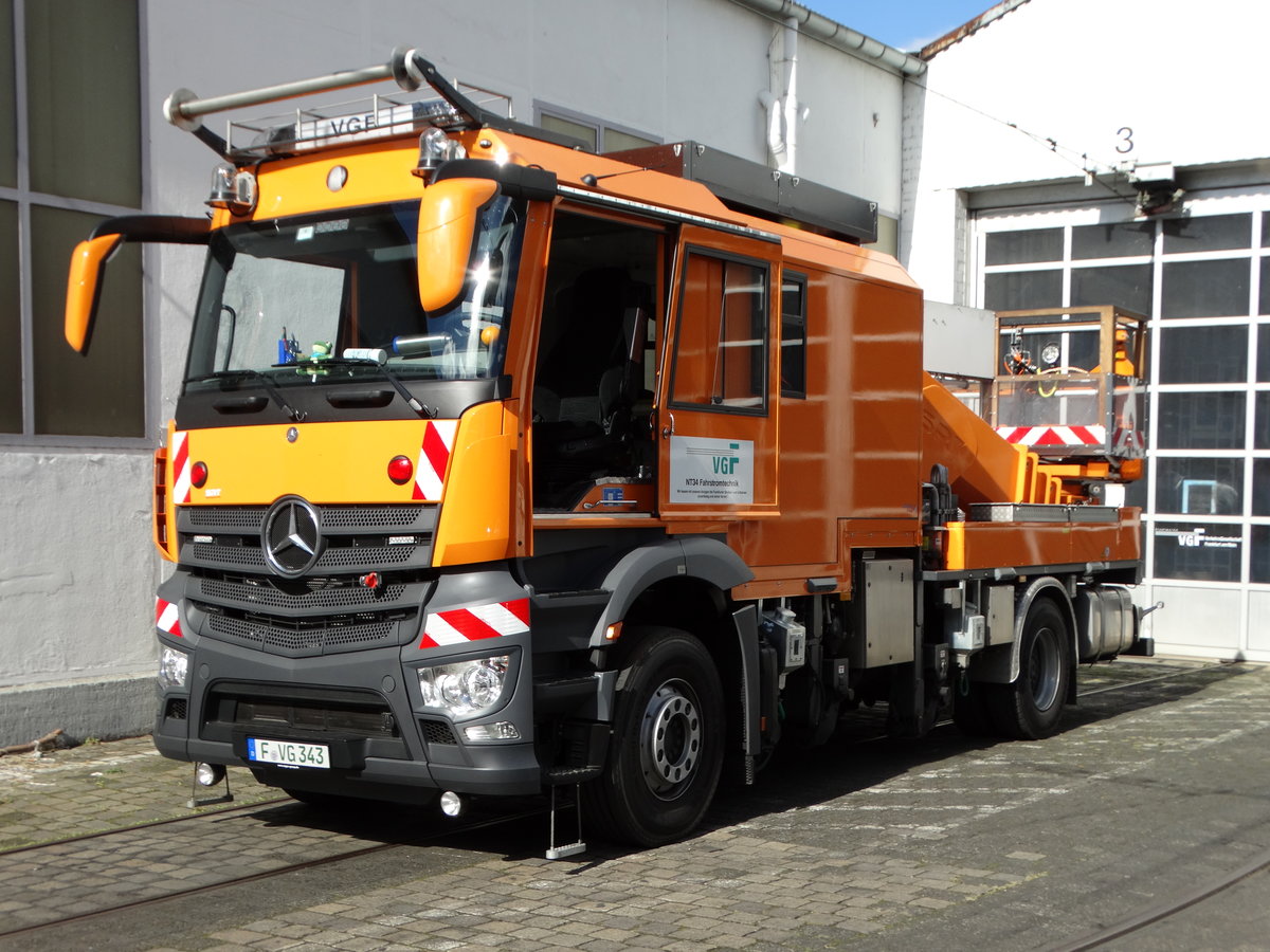 VGF Mercedes Benz Arocs Oberleitungswagen mit ZAGRO Zweiwege Einheit am 05.10.16 in Frankfurt am Main Eckenheim von einen Gehweg aus fotografiert