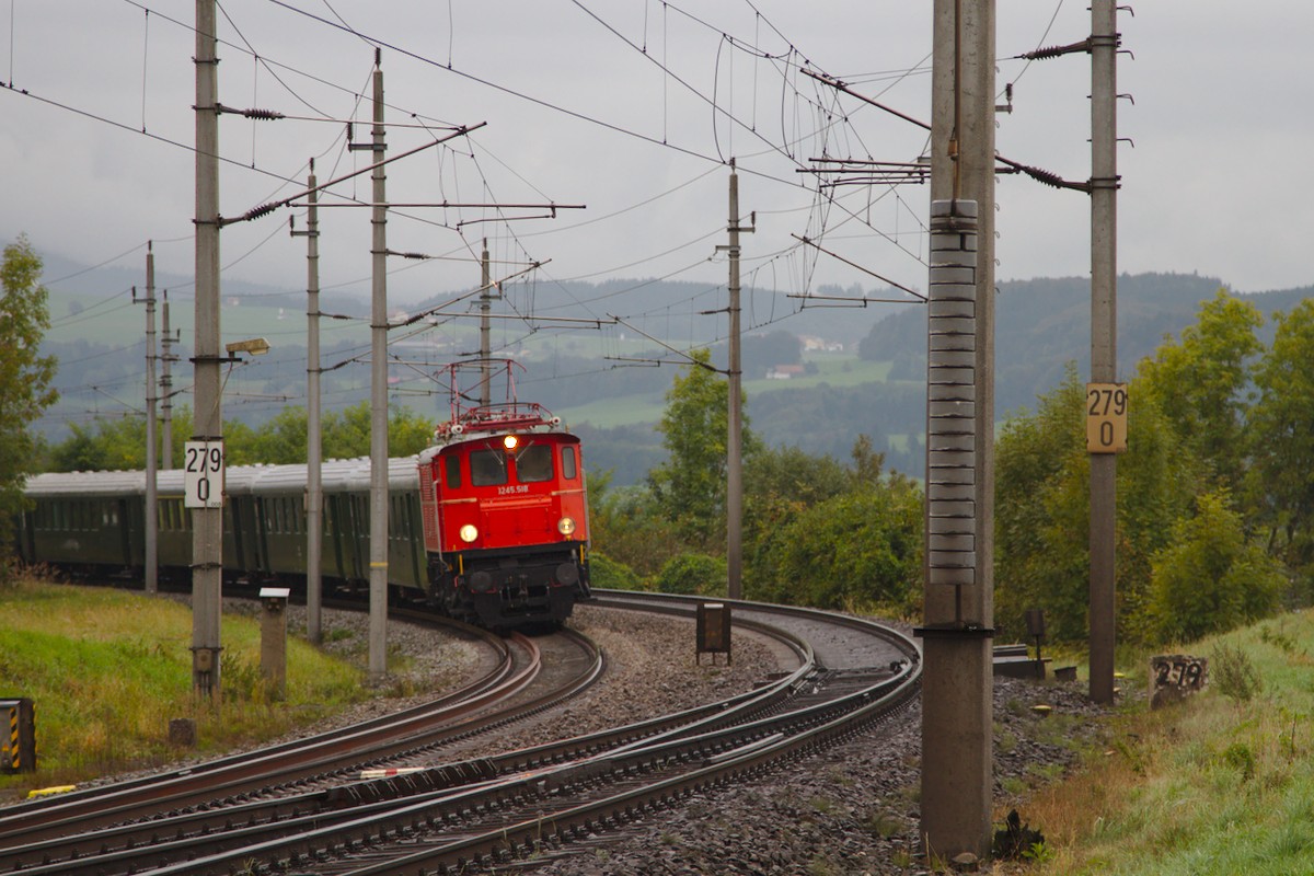 Weil's so schön ist, noch ein Foto der leuchtend roten 1245.518 bei der Einfahrt Ederbauer an einem verregneten Samstag Vormittag. (02.10.2016)