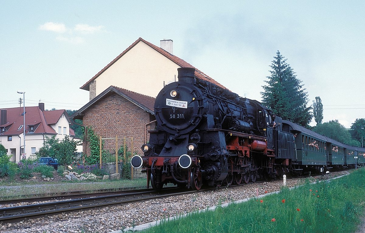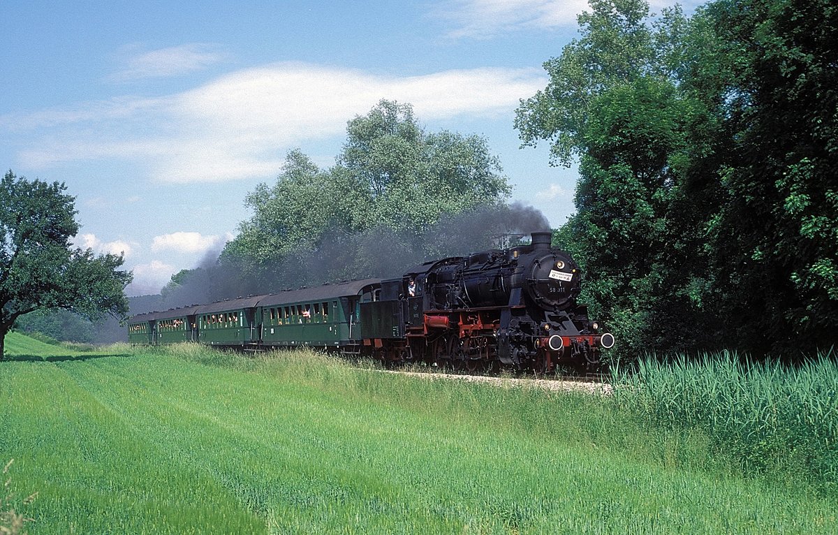 171011 mit RB nach Blankenburg am 10.05.1997 bei Hüttenrode auf der Rübelandbahn.