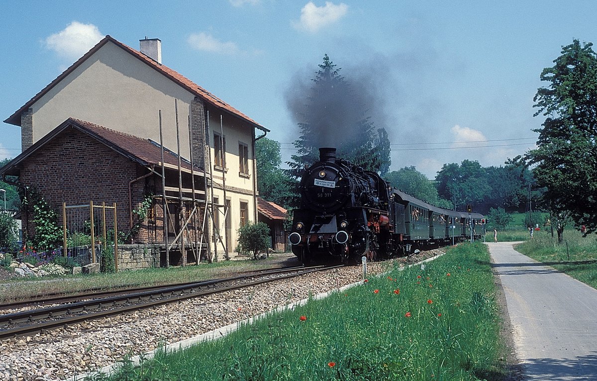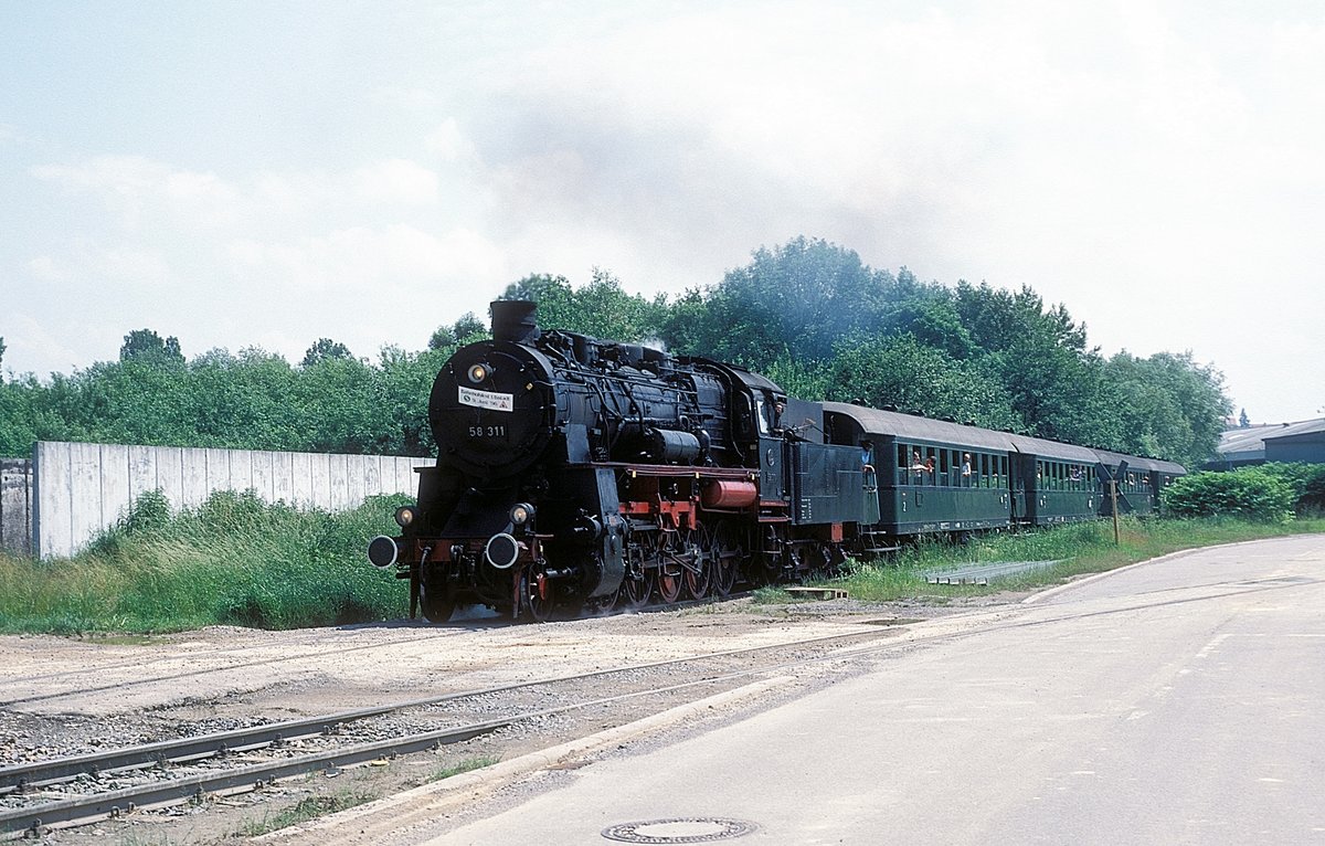 503655 ist am 19.5.1997 mit ihrem Museumszug in Mettingen angekommen und setzt um für die Rückfahrt nach Osnabrück.