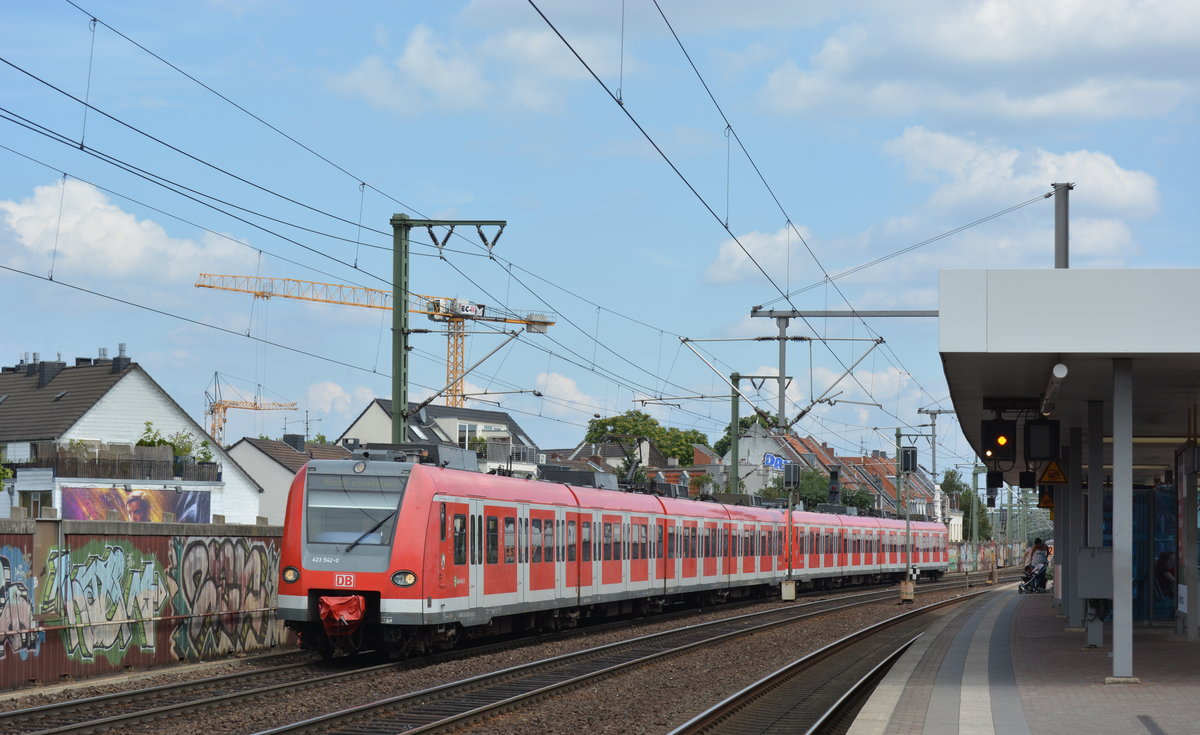 Eigendlich haben S-Bahnen auf diesen Gleisen nichts zu suchen da dort nur Güterzüge fahren. Aber 423 042 und 423 045 waren eine der seltenen Ausnahmen da sie als Leerfahrt unterwegs waren. Hier fahren sie durch Köln Ehrenfeld in Richtung Düren.