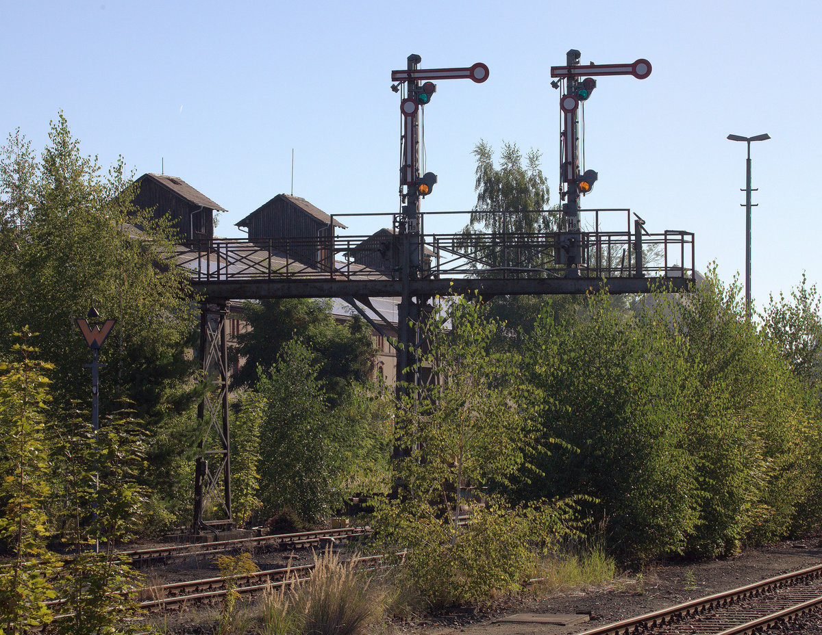 Neben der Schmalspurbahn scheint es nun in Zittau auch eine "Waldbahn" zu geben,zum Glück befinden sich die Signale auf einer Signalbrücke, sonst wär das Signalbild Hp0 bald nicht mehr zu erkennen. 31.08.2016 08:39 Uhr.