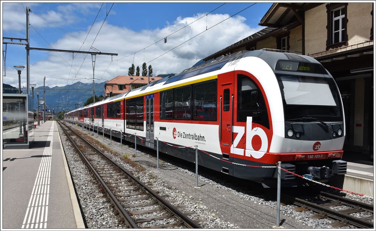 Spatz trifft Adler und Fink in Meiringen. Das sind die Bezeichnungen der neuen Stadler Triebzüge bei der Zentralbahn. (20.06.2016)