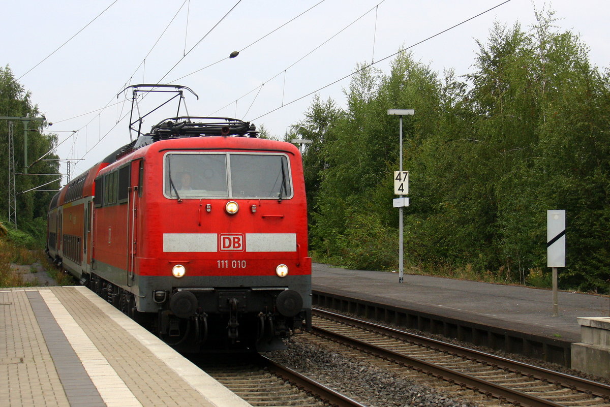 111 010 DB kommt mit dem RE4 von Dortmund-HBf nach Aachen-Hbf und kommt aus Richtung Neuss-Hbf,Mönchengladbach-Hbf,Rheydt-Hbf,Wickrath,Beckrath,Herrath und fährt in Erkelenz ein und fährt dann weiter in Richtung Baal,Hückelhoven-Baal,Brachelen,Lindern,Süggerrath,Geilenkirchen,Frelenberg,Zweibrüggen,Übach-Palenberg,Rimburg,Finkenrath,Hofstadt,Herzogenrath, Kohlscheid,Richterich,Laurensberg,Aachen-West,Aachen-Schanz,Aachen-Hbf. Aufgenommen vom Bahnsteig 1 in Erkelenz. Am Nachmittag vom 17.9.2016.