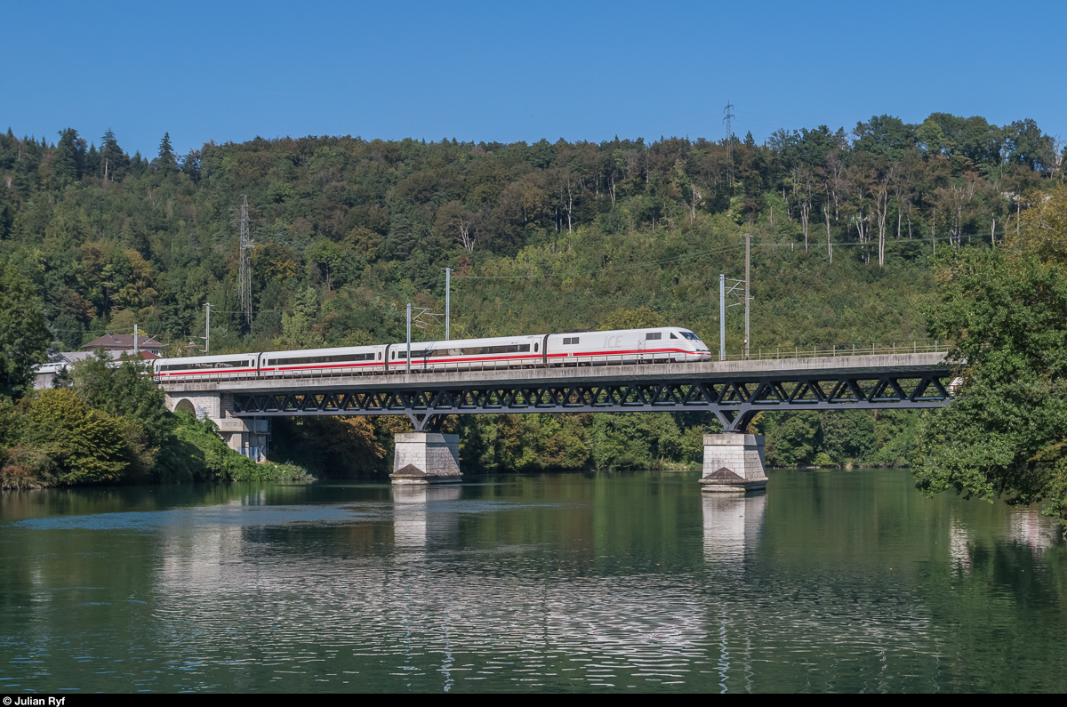 Ein ICE 1 nach Zürich HB überquert am 24. September 2016 kurz nach der Ausfahrt aus dem Hauenstein-Basistunnel die Aare.