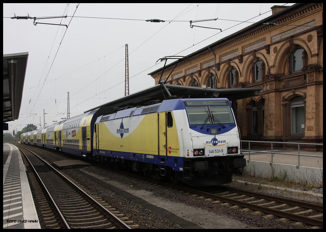 Metronom im Bahnhof Kreiensen am 6.9.2016 um 10.53 Uhr nach Uelzen. Es schiebt 146531.