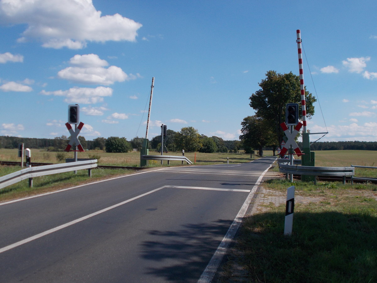 Zwischen Wandlitz und Klosterfelde gelegender Bahnübergang.Aufnahme am 19.August 2016.