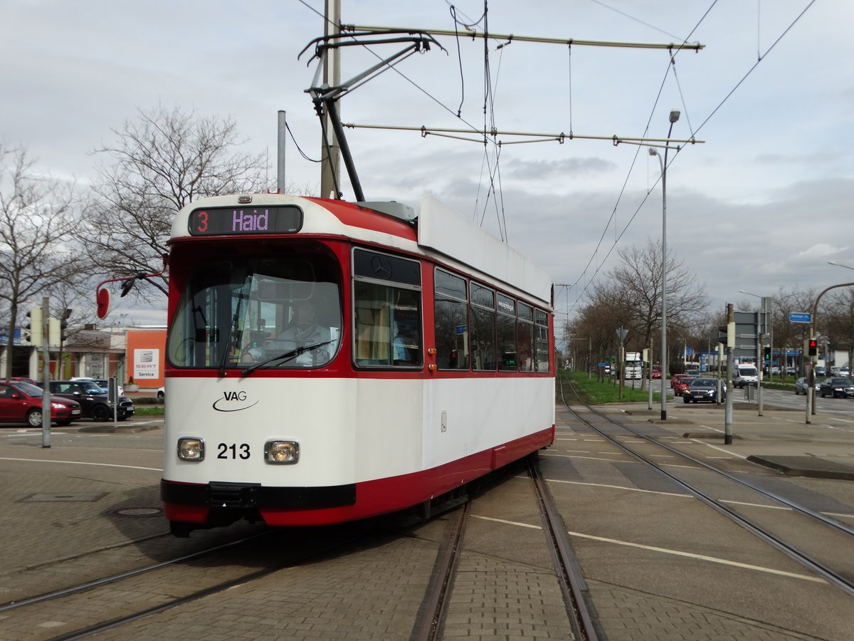 Freiburger VAG Düwag GT8K Wagen 213 am 21.03.17 in Haid