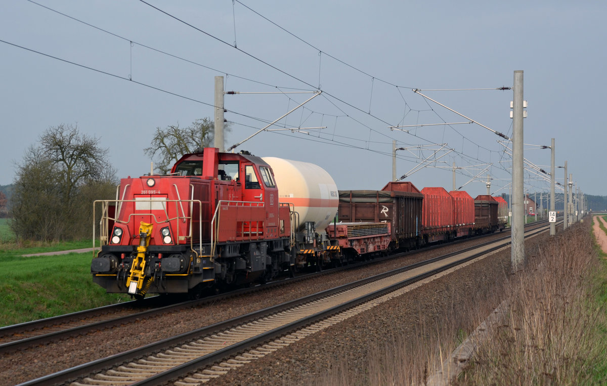 261 095 schleppte am Morgen des 04.04.17 die Übergabe für den Hafen Roßlau durch Rodleben.