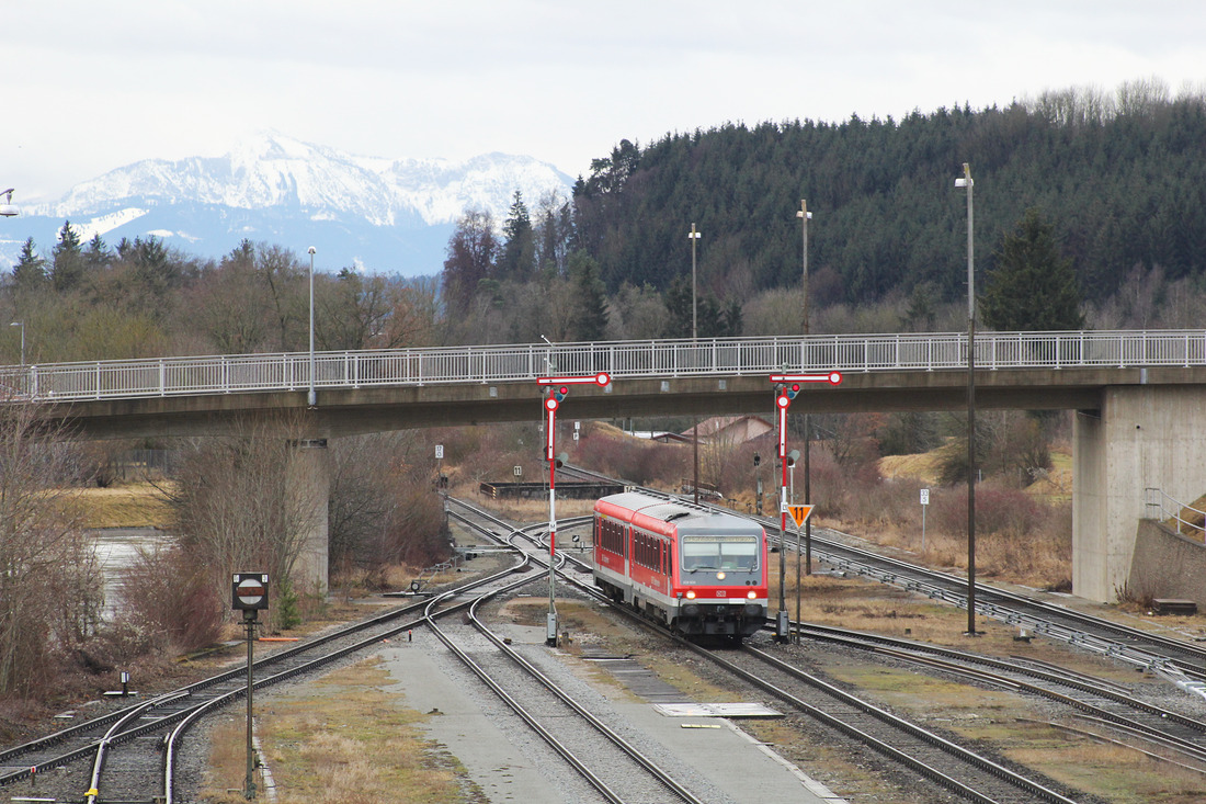 628 630 erreicht aus Richtung Süden kommend den Bahnhof Garching (Alz).
