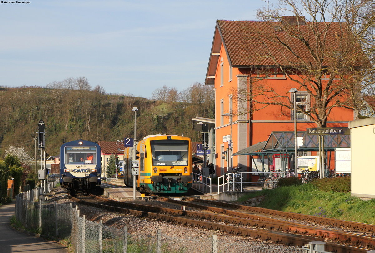 VT 126 und VS 202 als SWE74260 (Gottenheim-Endingen am Kaiserstuhl) und VT 650.81 als SWE74263 (Bahlingen am Kaiserstuhl-Gottenheim) in Eichstetten 30.3.17