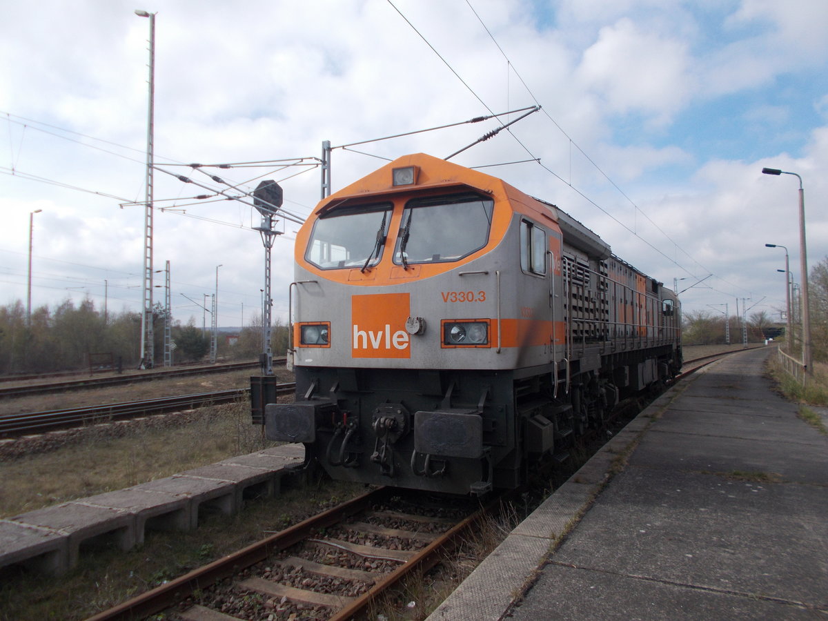 Der hvle Tiger V330.3 stand,am 17.April 2017,am Bahnsteig in Mukran.