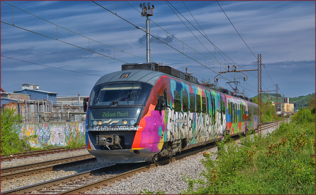 SŽ 312-121 fährt durch Maribor-Tabor Richtung Zidani Most. /14.4.2017