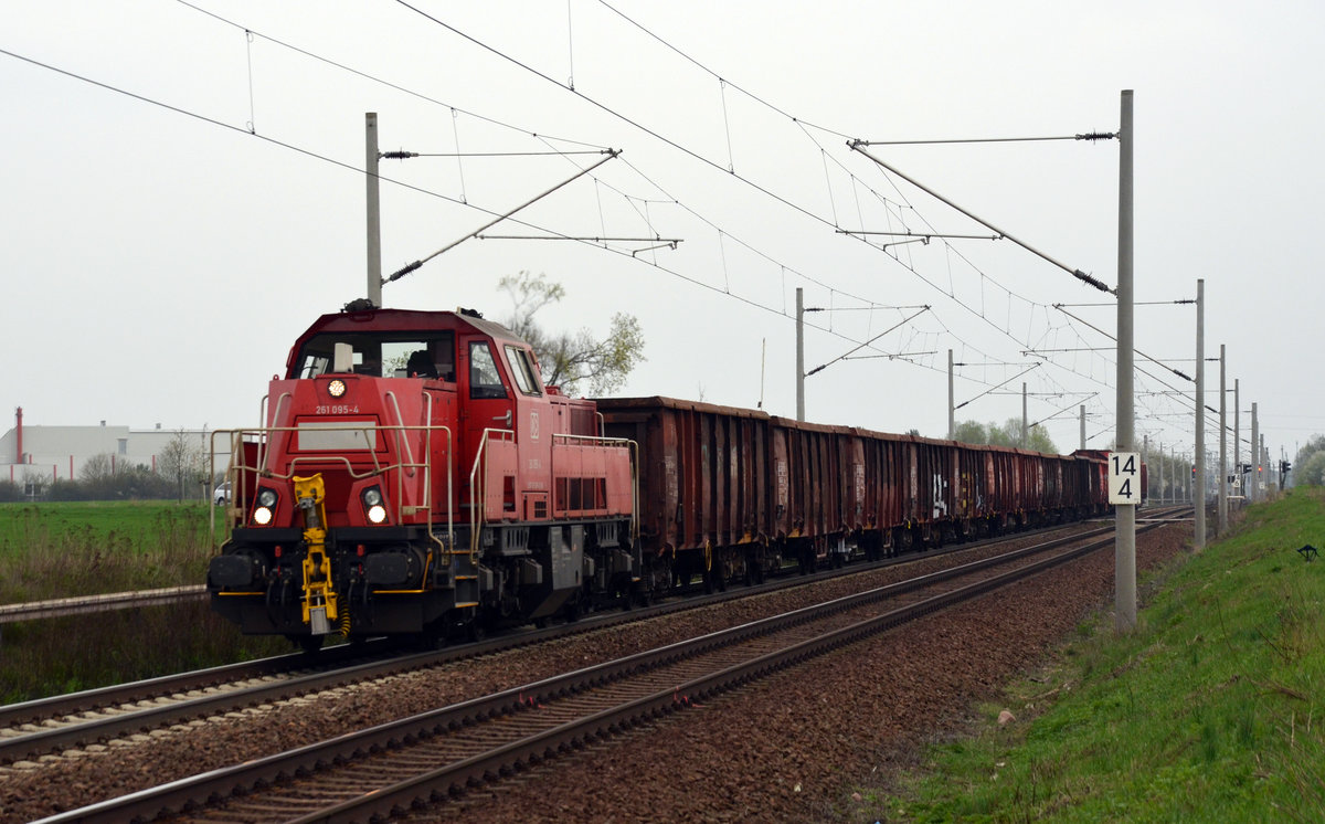 Am 04.04.17 rollte 261 095 mit der Übergabe aus dem Hafen Roßlau durch Rodleben zurück Richtung Magdeburg.