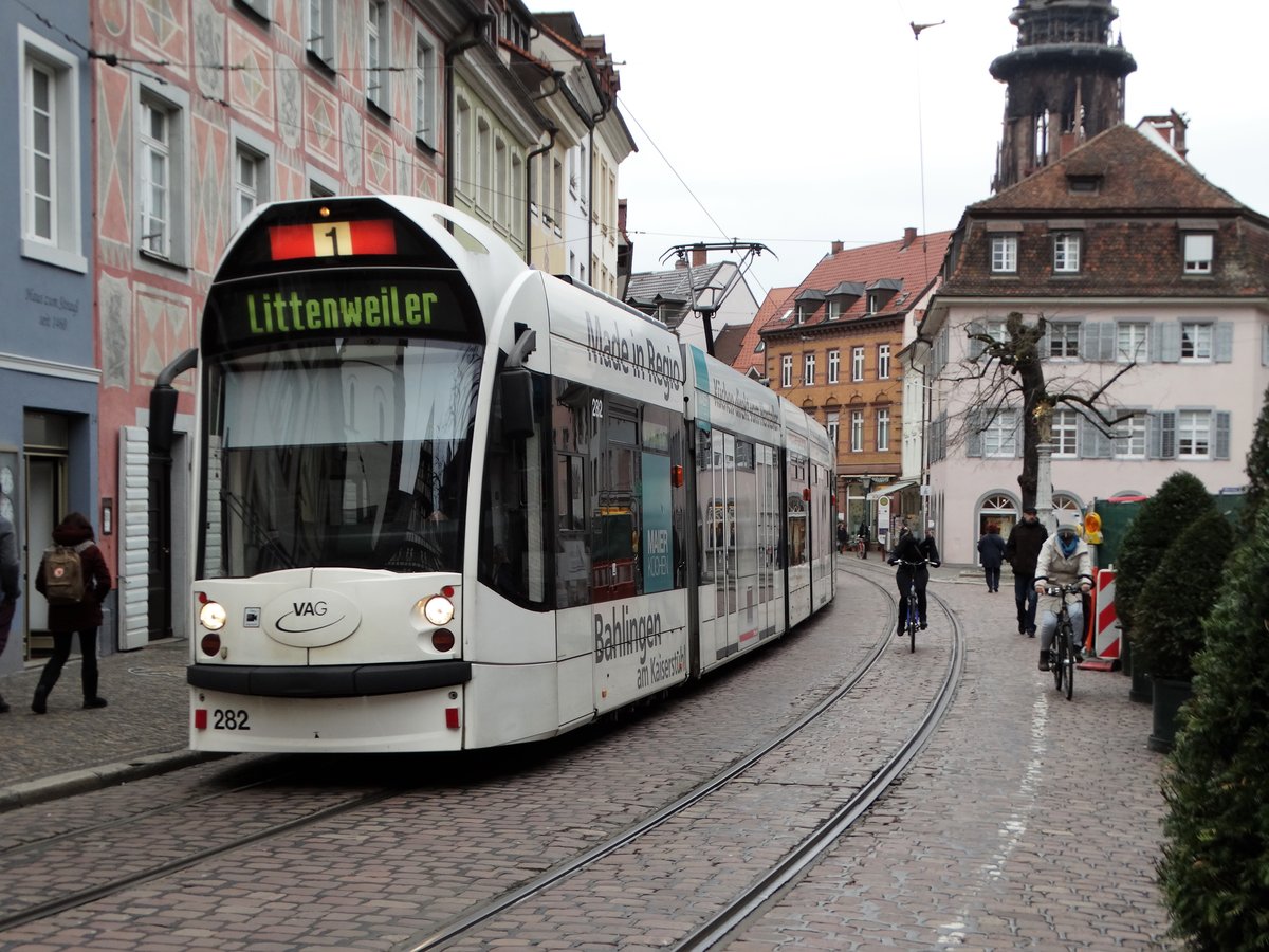 Freiburger VAG Siemens Combino Advanced 282 am 22.03.17 in der Innenstadt
