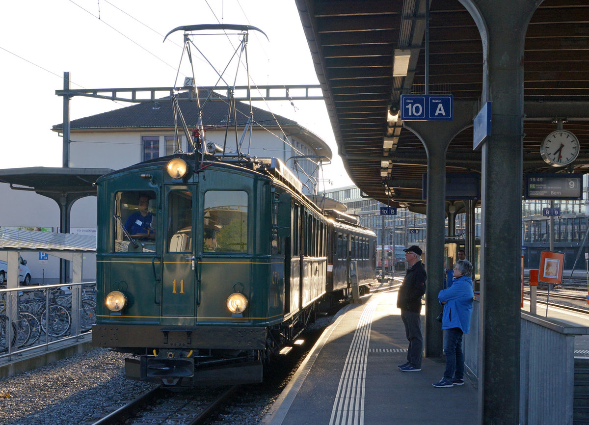 Der Triebwagen 11 anlässlich der Rückfahrt von Lohn-Lüterkofen bei der Einfahrt in den Endbahnhof Solothurn.