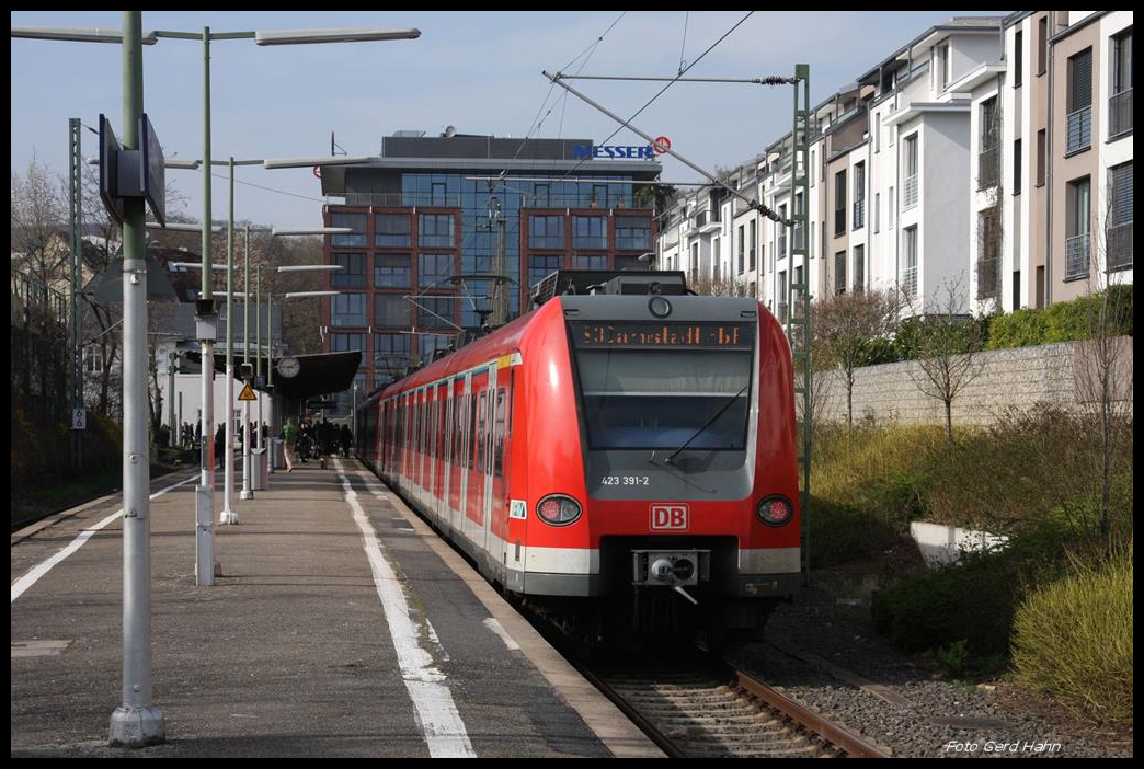 423447-2 fährt hier am 24.3.2017 um 15.10 Uhr in Bad Soden (Taunus) ein.