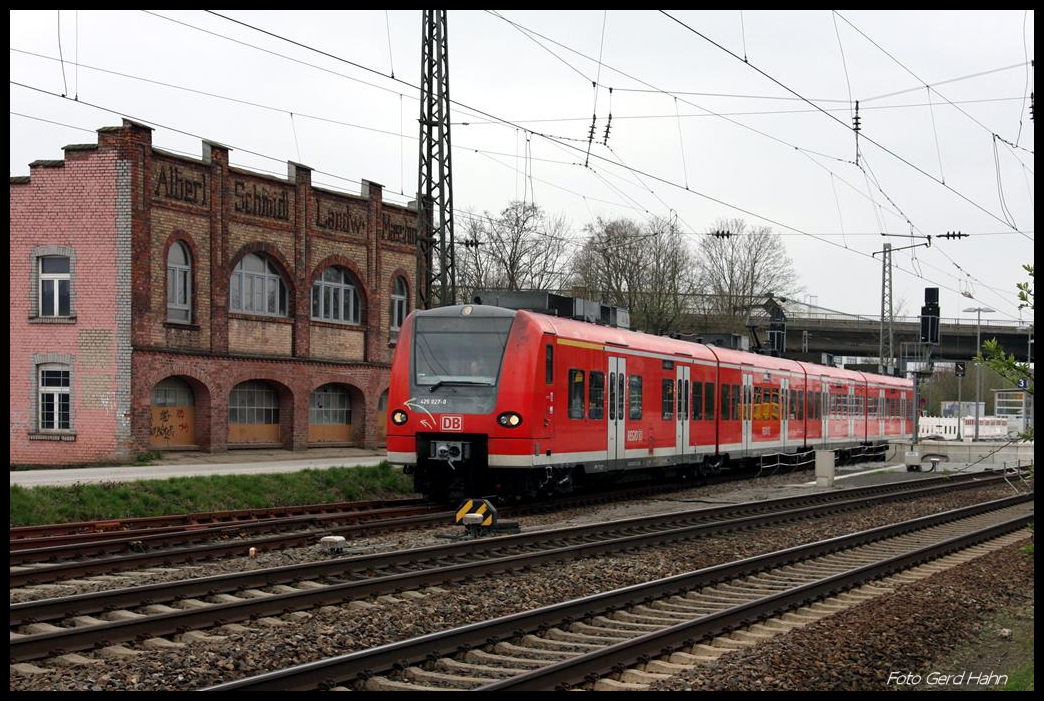 425027-0 fährt hier am 24.3.2017 um 12.09 in Großsachsen - Heddesheim nach Bensheim ab.