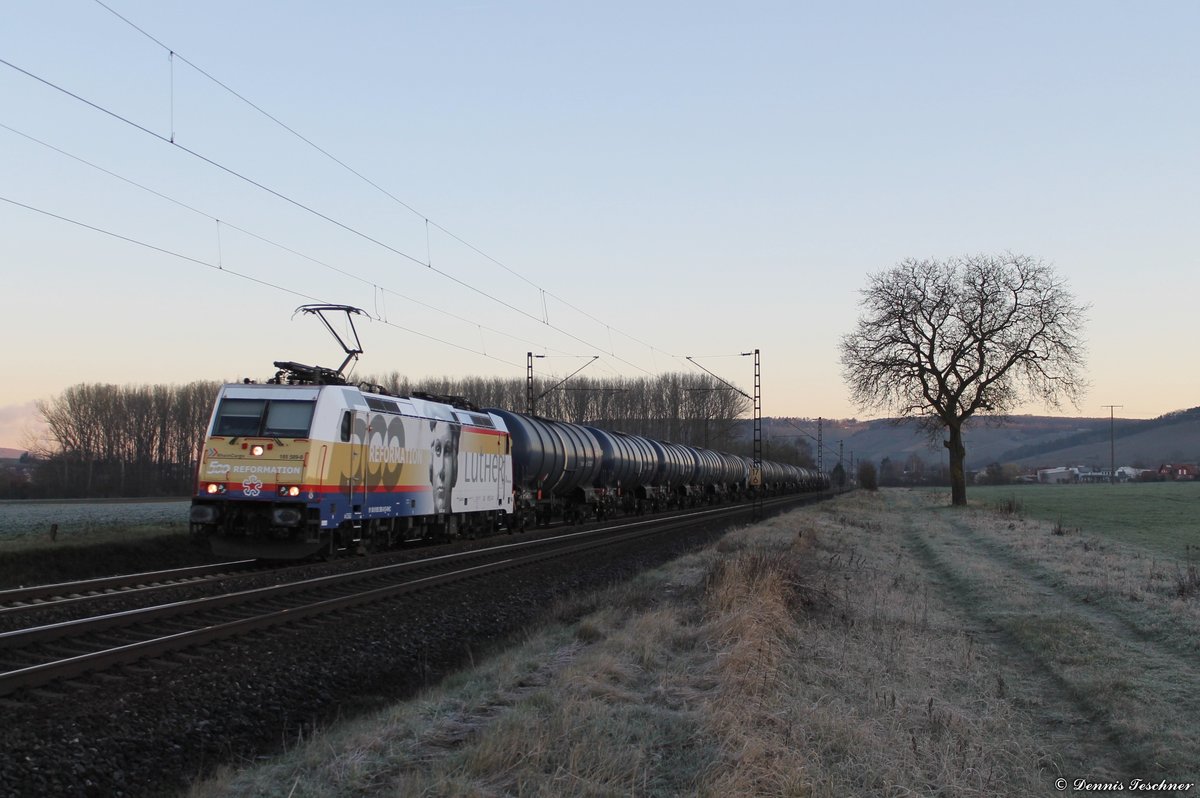 185 589-9 RHC (Martin Luther) mit Kesselwagen bei Retzbach-Zellingen am 28.03.2017
