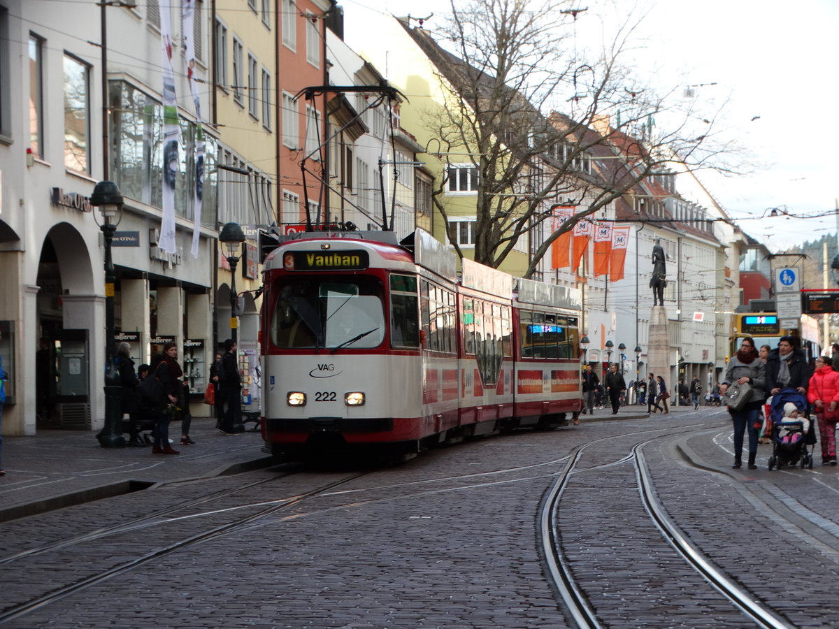 Freiburger VAG Düwag GT8N Wagen 222 am 20.03.17 in der Altstadt