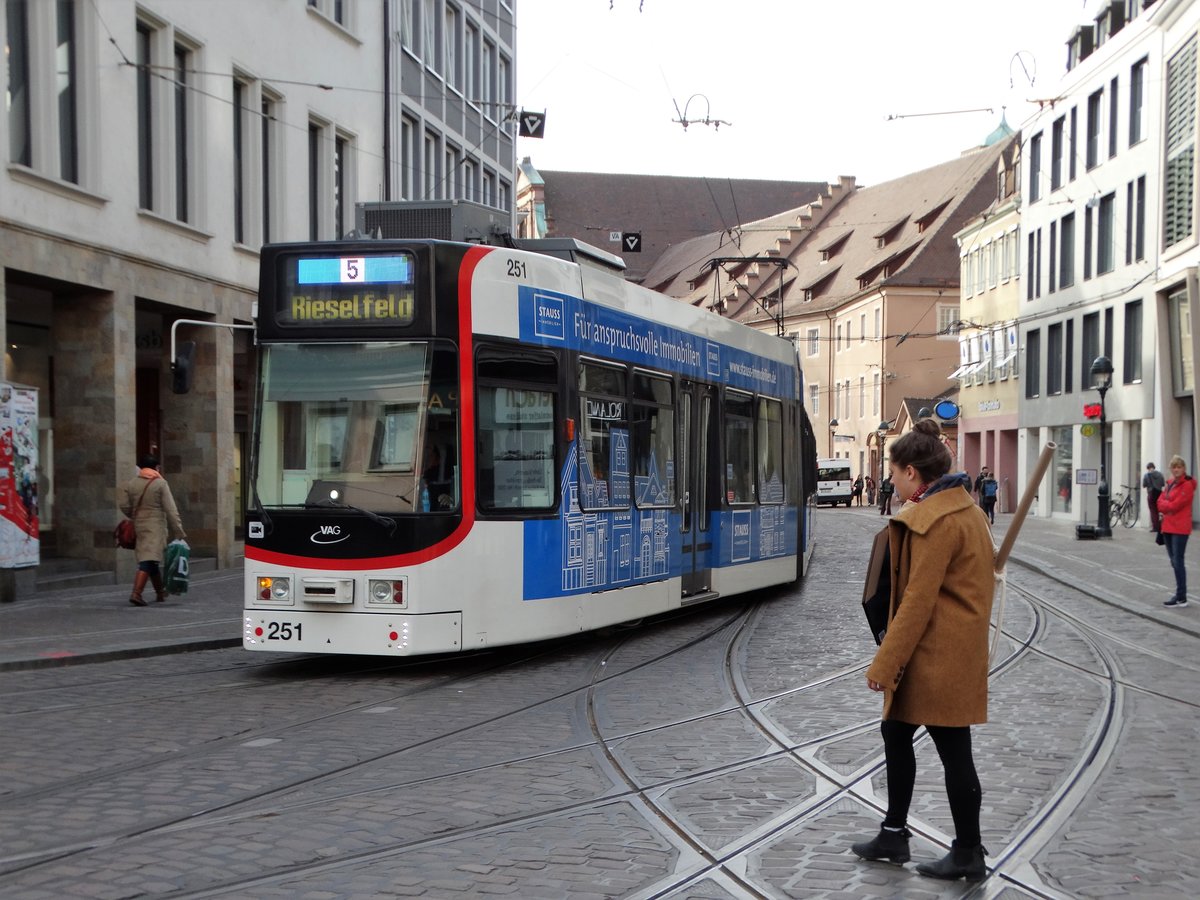 Freiburger VAG Düwag GT8Z 251 (modernisiert) am 20.03.17 in der Innenstadt