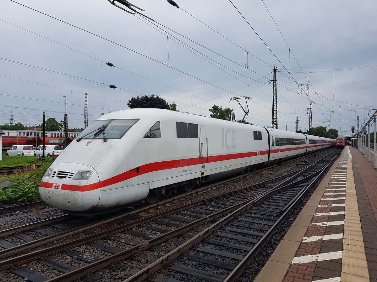 403 515-0  Singen(Hohentwiel)  trifft am 1.7.2017 als ICE816 von Frankfurt(Main) Hauptbahnhof im Kölner Hauptbahnhof auf 403 028-4  Aachen  als ICE106 von Basel SBB nach Dortmund Hauptbahnhof.
