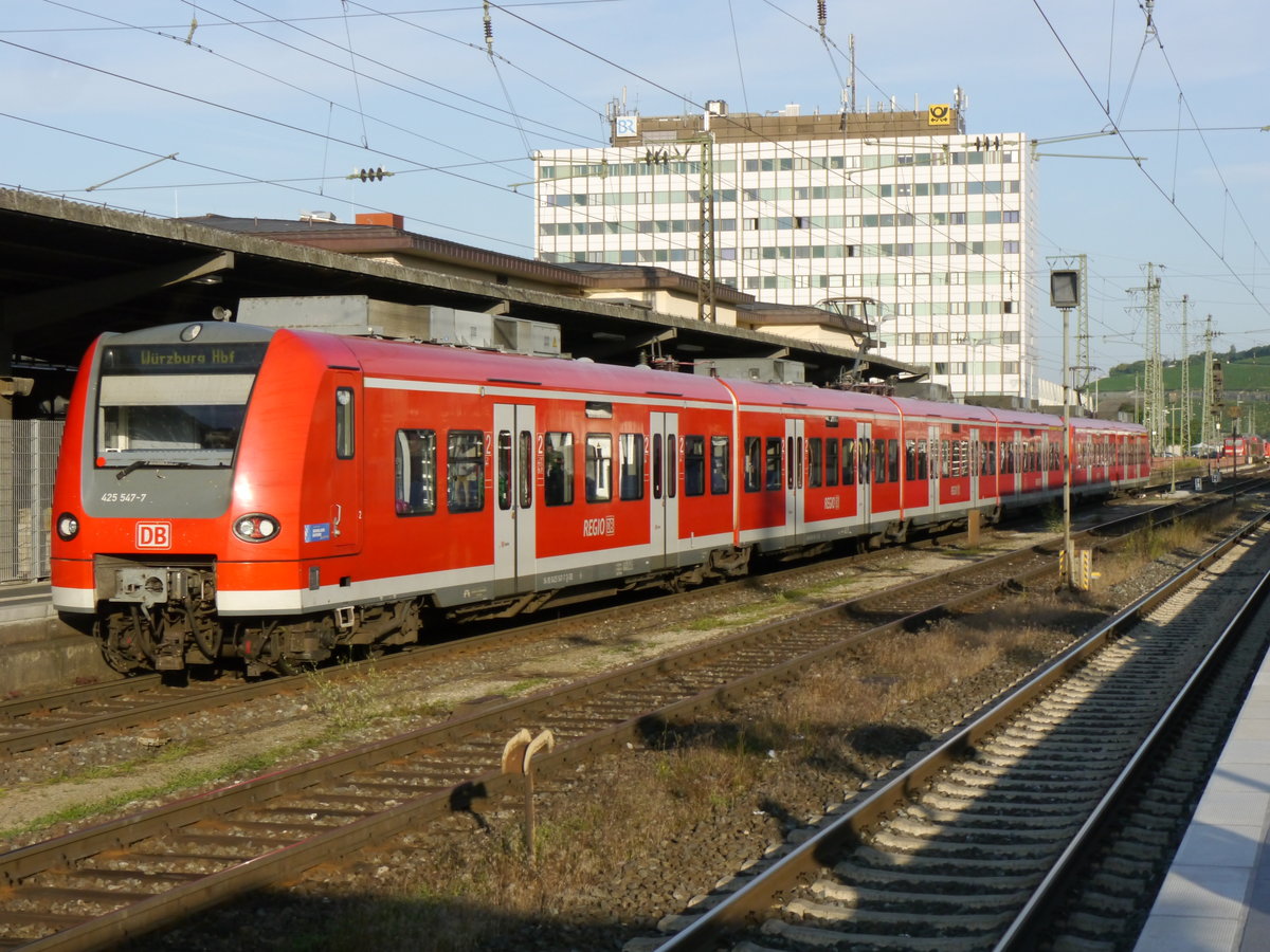 Am 31 Juli 2017 fuhr 425 047 mit einem weiterem 426 als RB 58102 aus Treuchlingen in Würzburg Hbf auf Gleis 1 ein.