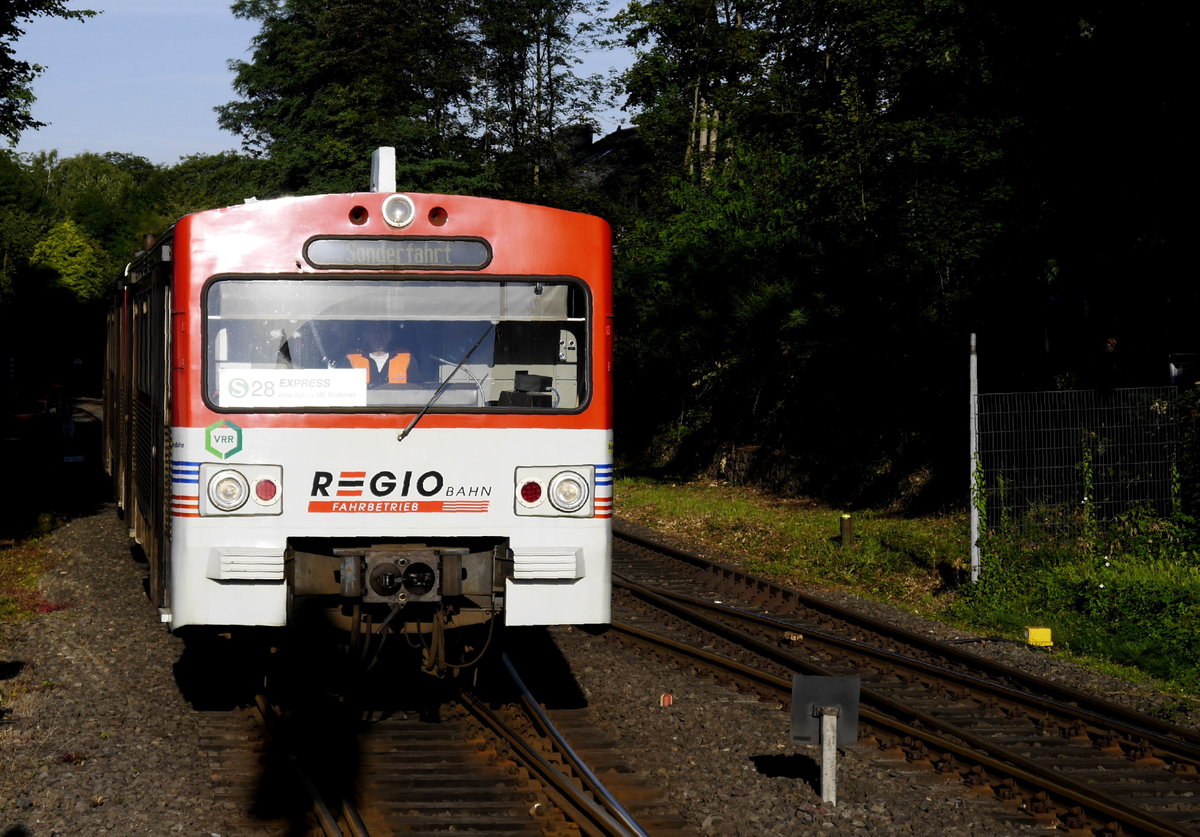 In der morgendlichen Hvz werden für die Express-SBahn 28 zwei Umläufe gebraucht. Dazu fahren die ex-AKN VT2E je einen Umlauf solo. Im Bild hat 2.39 von Düsseldorf Hbf kommend Mettmann Stadtwald erreicht (7.8.17).