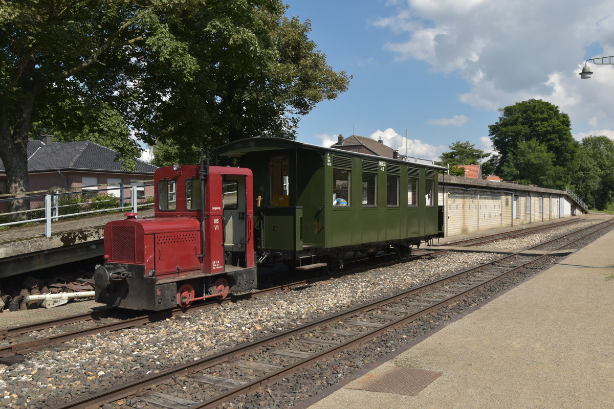 Kleinstdiesellok Langeoog mit einem Personenwagen in Schierwaldenrath abgestellt.