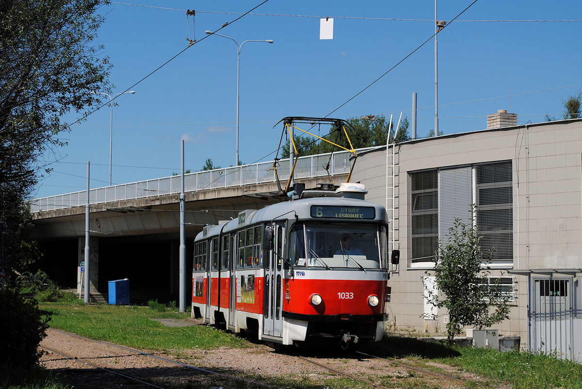Tw.1033 bei der Ausfahrt aus der Wendeanlage Kralovo Polje. (05.08.2017)