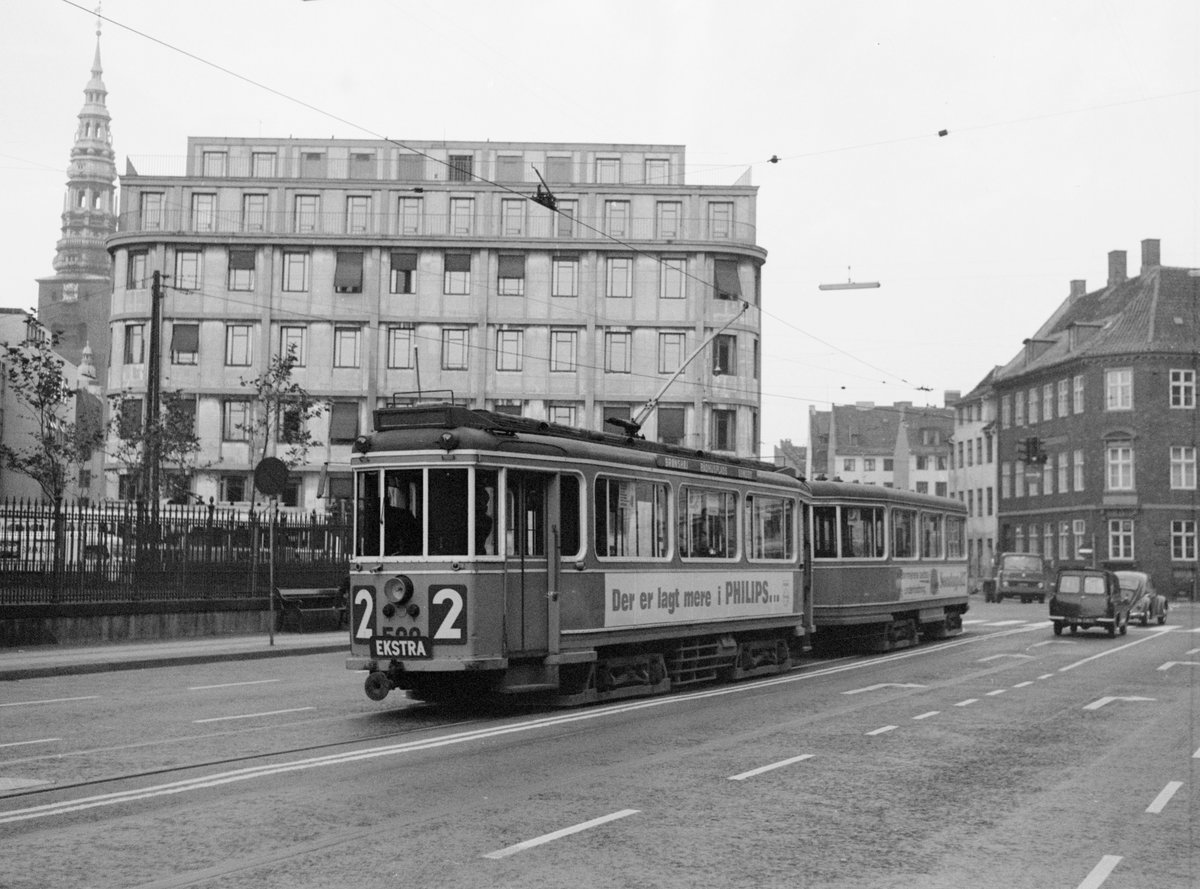 København / Kopenhagen Københavns Sporveje SL 2 (Tw 509 + Bw 15xx als E-Zug) København K (Stadtmitte), Havnegade / Holmens Kanal / Holmens Kirke im September 1968. - Scan von einem S/W-Negativ. Film: Ilford FP3.
