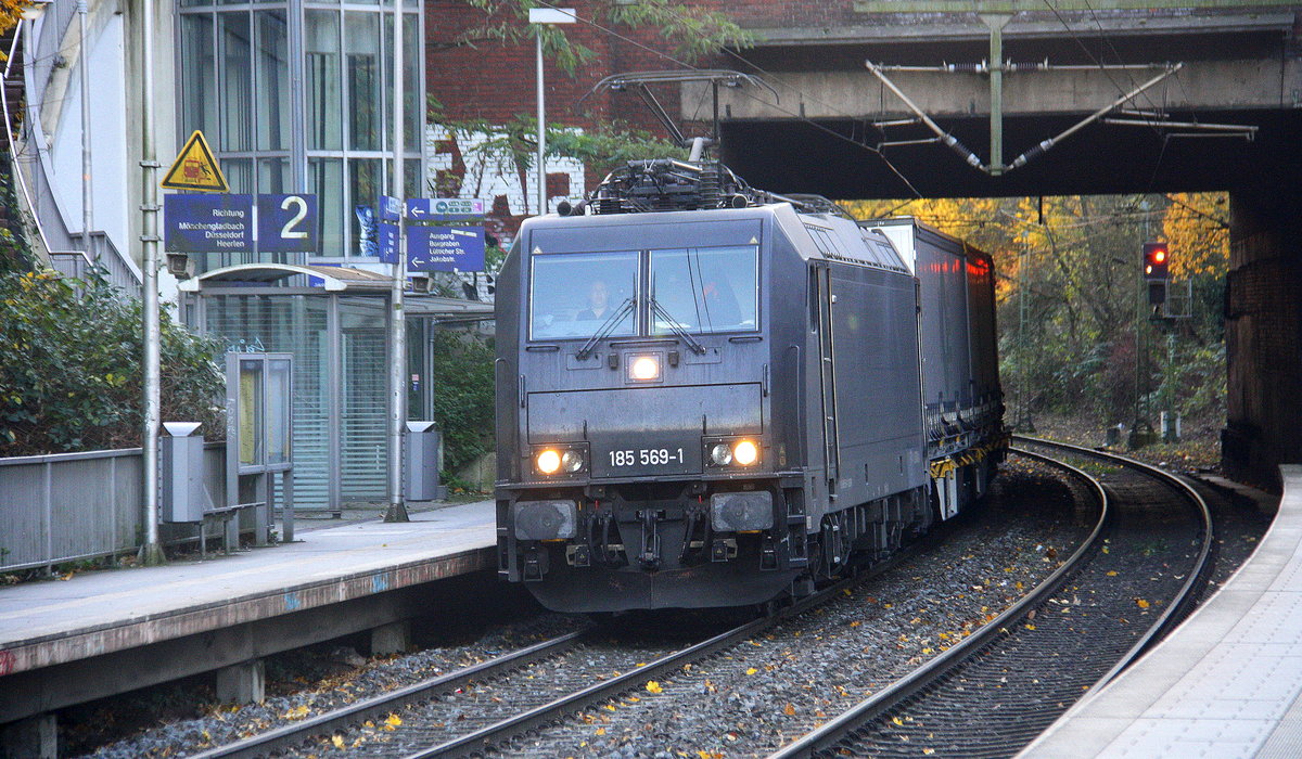 185 569-1 von MRCE/SBB-Cargo kommt aus Richtung Köln,Aachen-Hbf und fährt durch Aachen-Schanz mit einem Güterzug aus Novara(I) nach Genk-Zuid Haven(B) und fährt in Richtung Aachen-West.