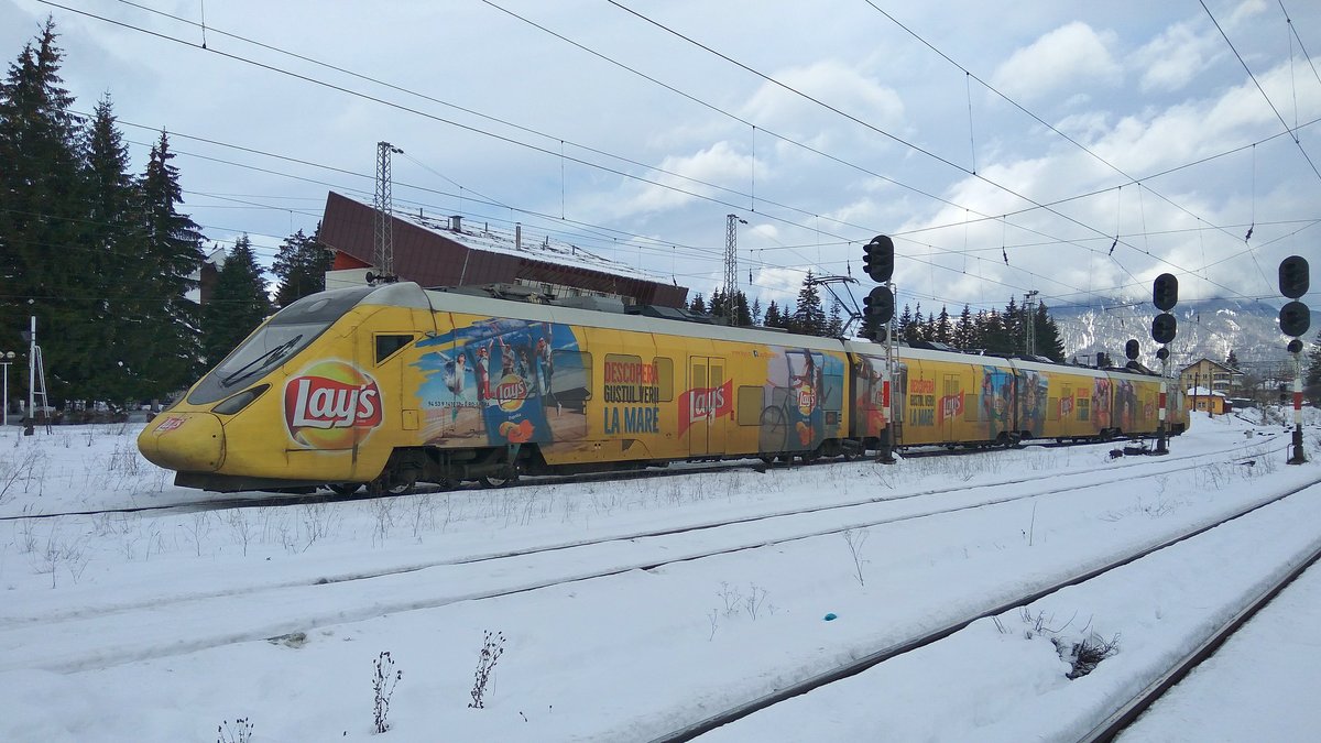 Bahnhof Predeal in weißem Kleid - Ausfahrt in Richtung Brasov, am 30.11.2017