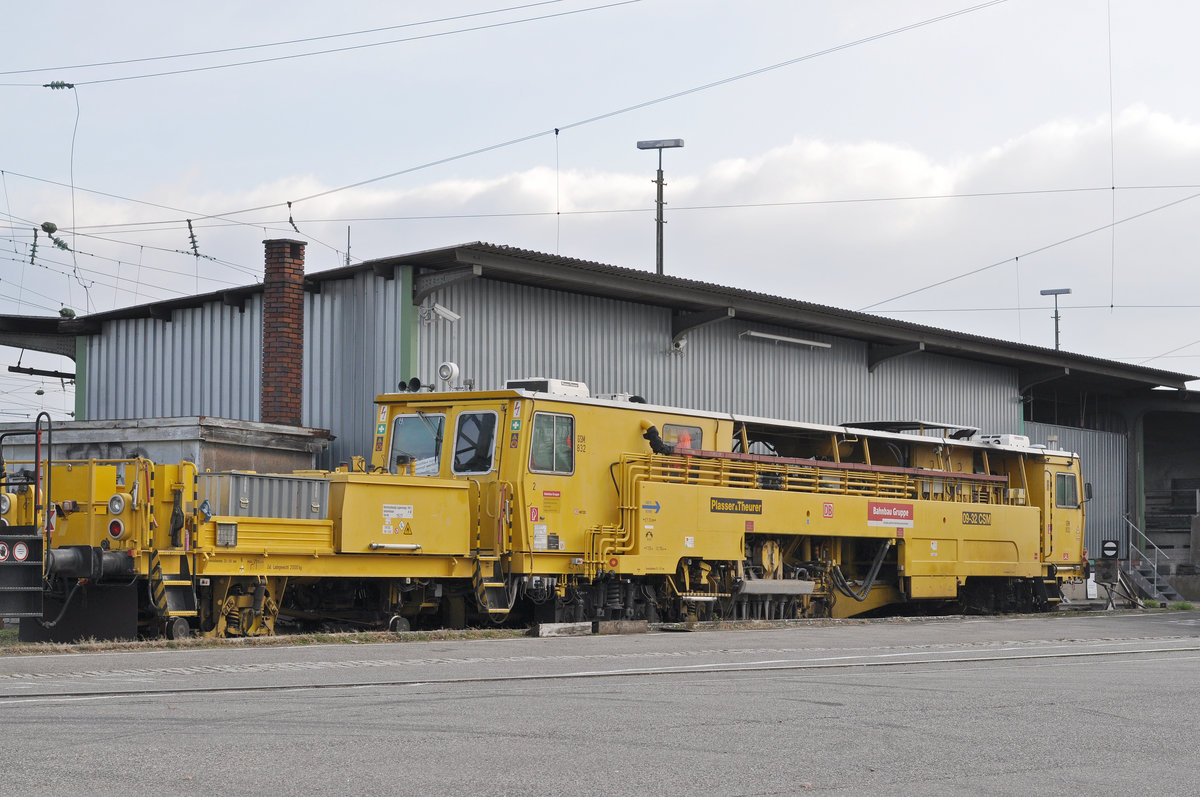 Zweischwellen Stopfmaschine 97 40 68 001 17-1 ist beim Badischen Bahnhof abgestellt. Die Aufnahme stammt vom 02.12.2017.