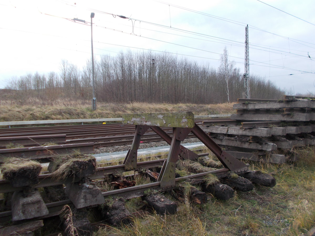 Dieser Prellbock wird in Bergen/Rügen nicht mehr gebraucht.Aufnahme vom 10.Dezember 2017.
