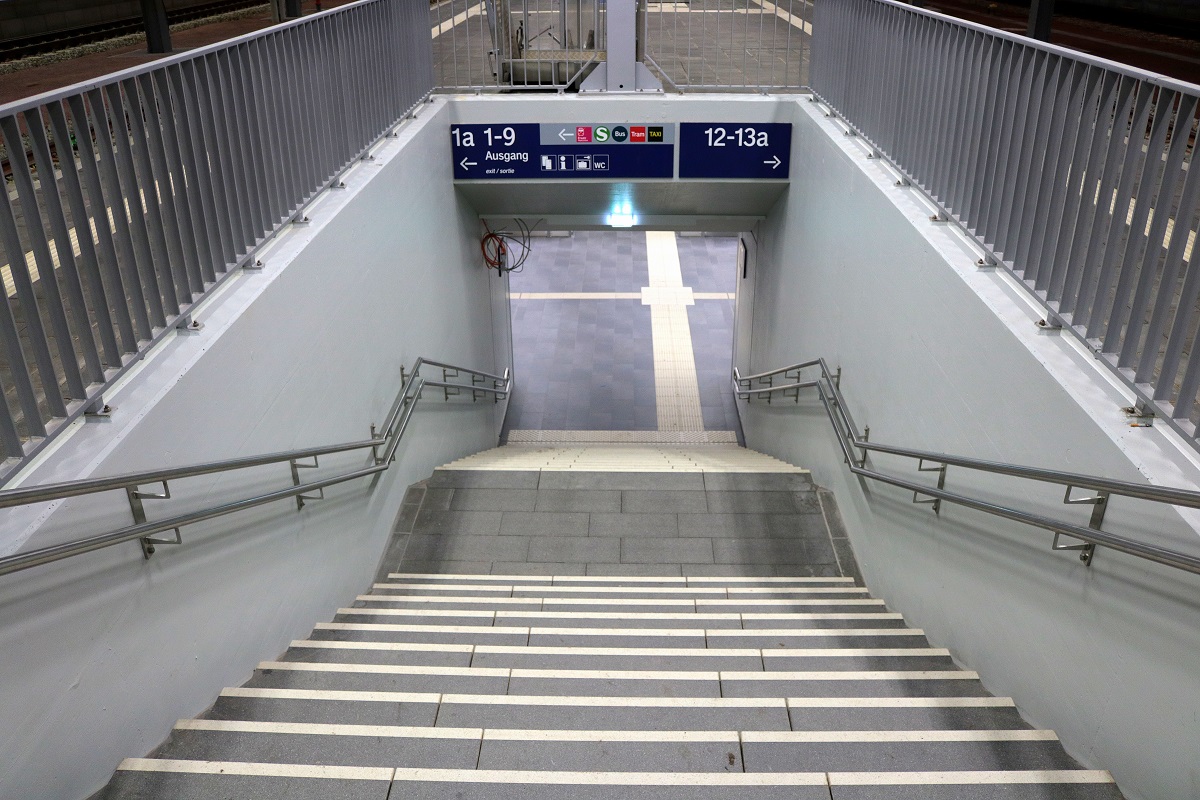 Blick auf den Treppenzugang zu Bahnsteig 10/11 in Halle(Saale)Hbf. [2.12.2017 | 16:34 Uhr]